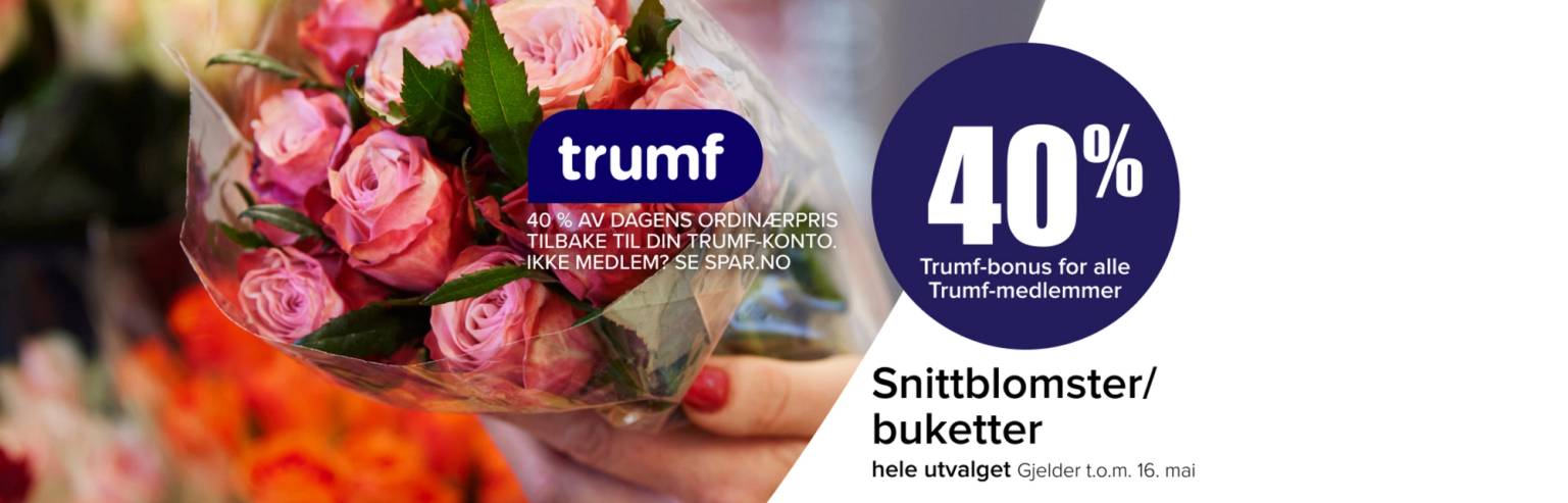 Som Trumf-medlem sparer du 1% bonus hver eneste gang du handler hos oss. Du kan enkelt spare bonus i Trumf ved å registrere bankkortet ditt. Da trenger du bare ditt eget bankkort for å spare bonus. Når du betaler kontant kan du benytte Trumf-kortet. Trumf-medlemsskap er gratis og det er lett å skaffe seg.